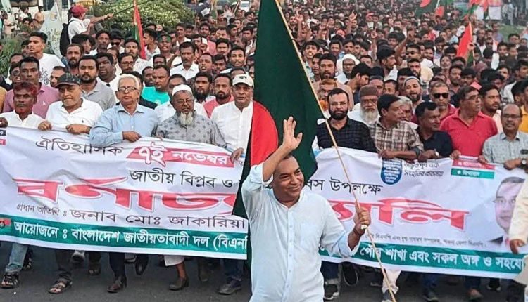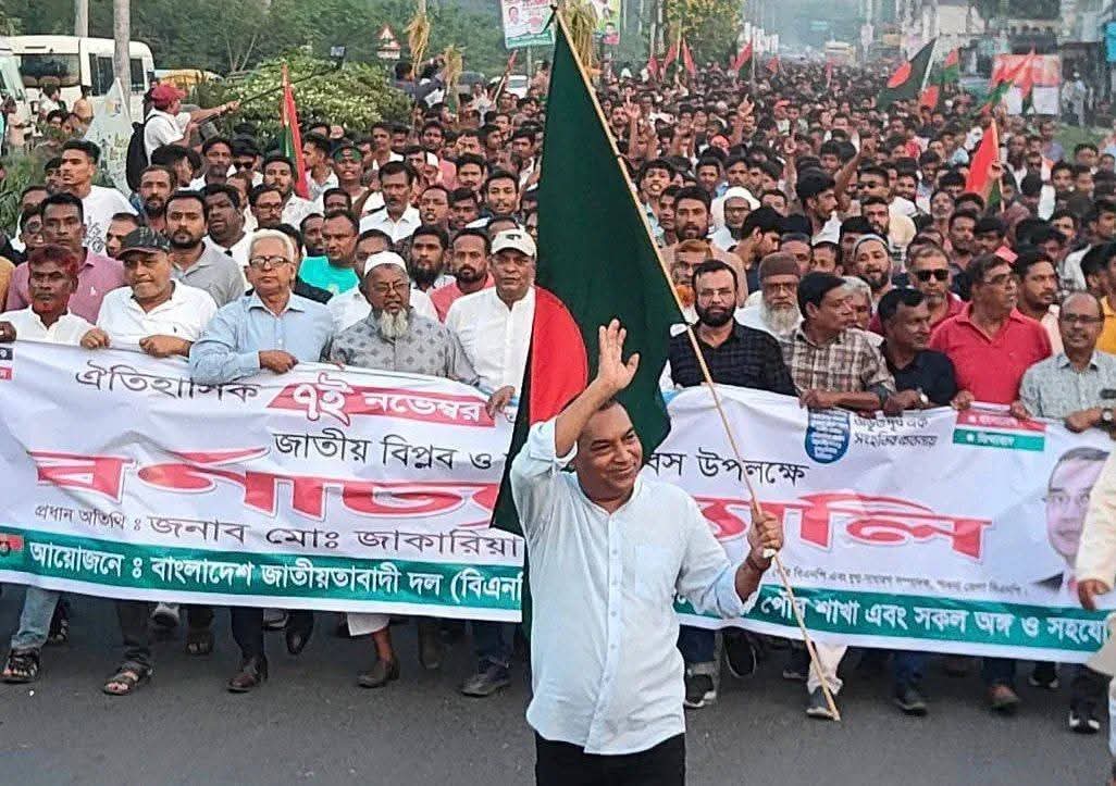পাবনা প্রতিনিধি: ঐতিহাসিক ৭ নভেম্বর জাতীয় বিপ্লব ও সংহতি দিবস উপলক্ষে জাকারিয়া পিন্টুর নেতৃত্বে পাবনার ঈশ্বরদীতে বিশাল বর্ণাঢ্য র্যালি বের হয়।