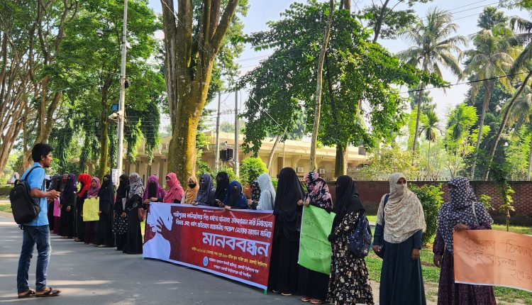 গাজীপুরে শিশু ধর্ষণের ঘটনায় রাবি ছাত্রী সংস্থার মানবনন্ধন