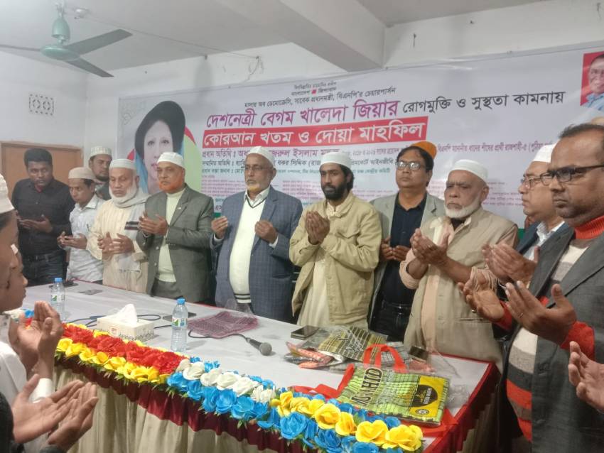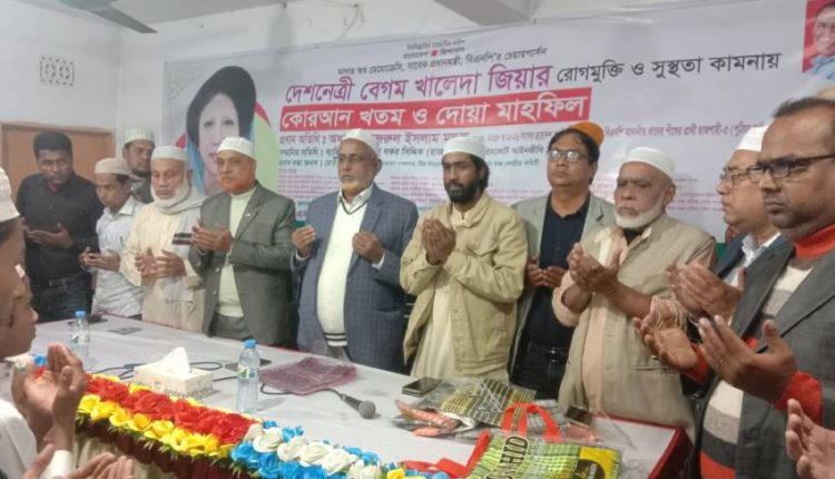 পুঠিয়ায় সাবেক প্রধানমন্ত্রী খালেদা জিয়ার রোগমুক্তি ও সুস্থতা কামনায় কোরআন খতম ও দোয়া মাহফিল অনুষ্ঠিত