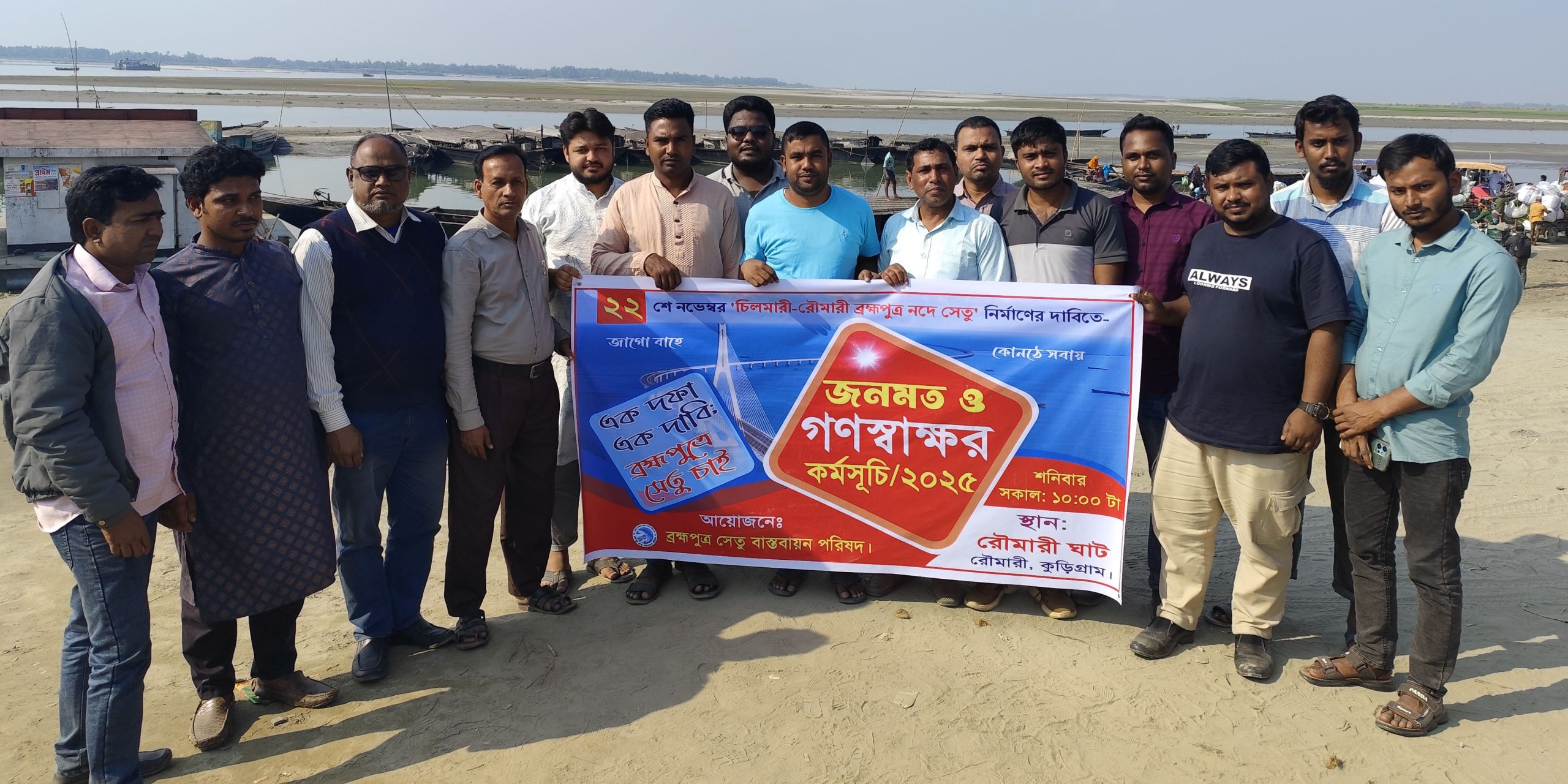 রৌমারীর ব্রহ্মপুত্র নদীতে সেতুর দাবীতে গণস্বাক্ষর অনুষ্ঠিত